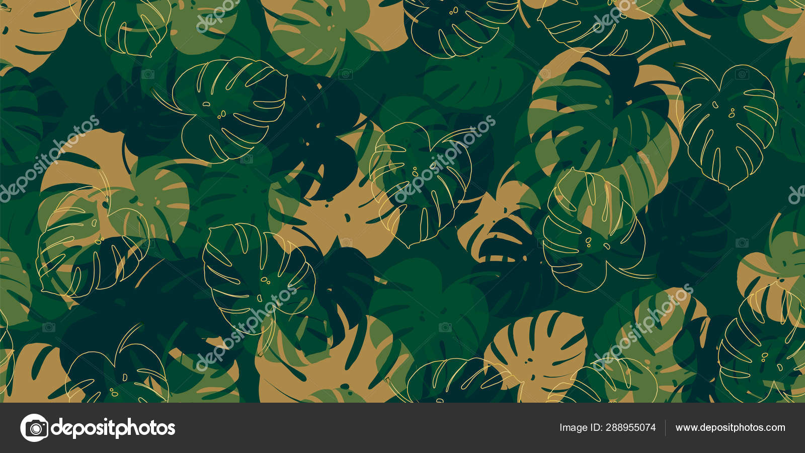 Tropical Green Monstera Seamless Vector Pattern Background Exotic