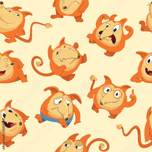 Seamless Pattern With Cute Fox In Different Moods Laughing Sad