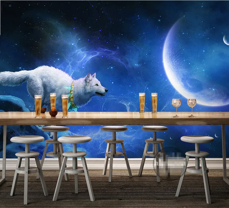 Custom Photo 3d Wallpaper Full Moon Night Mountain Moon Wolf Tv