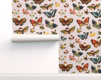 Vintage Wallpaper Moths And Butterflies Pattern Removable Self Adhesive Or Traditional Botanical Room Decor