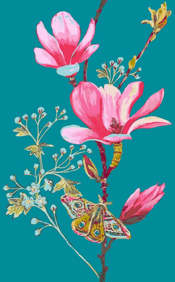 Magnolia And Moth Wallpaper Designed Here At Candyland Etsy