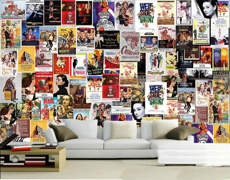 3d Wallpaper Custom Photo Mural After Old Movie Posters Background