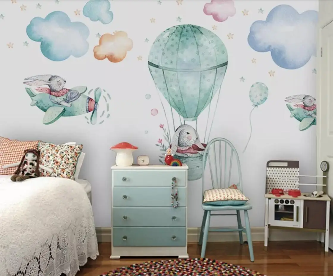 Hot Air Balloon Animal Wallpaper Mural Kids Room Contact Paper 3d