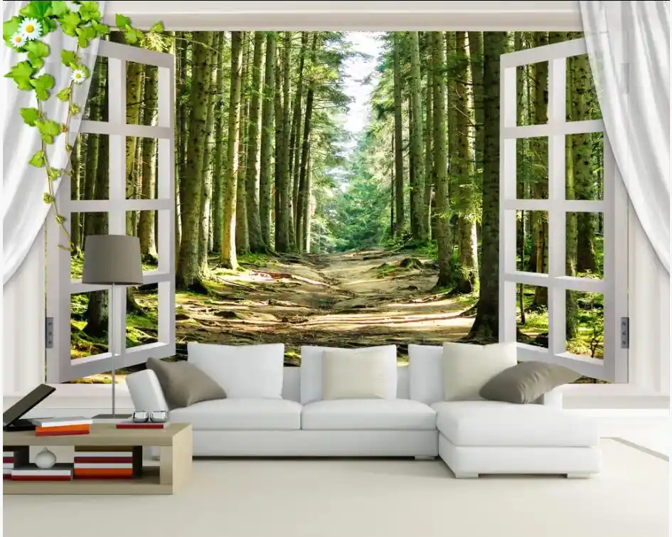 Wdbh Custom Mural 3d Wallpaper Forest Trees Outside The Window Tv