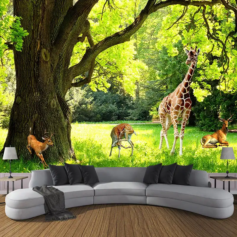 Custom Mural 3d Wallpaper Forest Animal World Decoration Painting