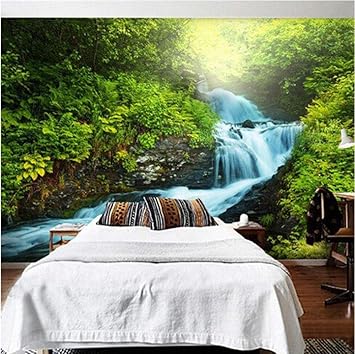 3d Green Forest Waterfall Landscape Self Adhesive Bedroom Wall