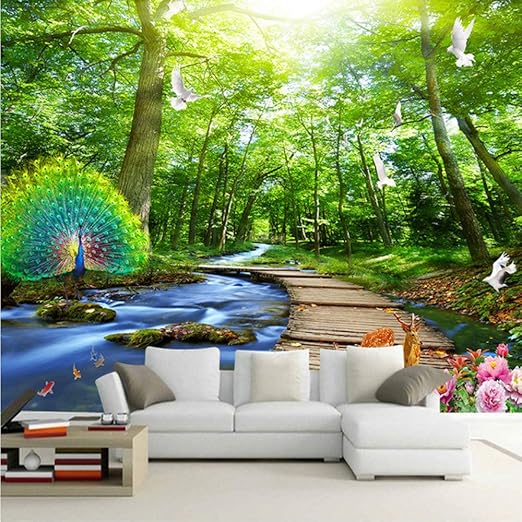 Amazon Com Xbwy Custom Mural Wallpaper 3d Forest Peacock Wood