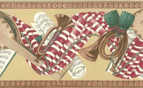 Musical Notes Swag Wallpaper Border French Horn Vintage Etsy