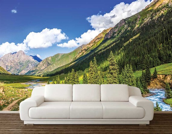 Nature Scene Wallpaper Pine Trees Wall Covering Wall Etsy