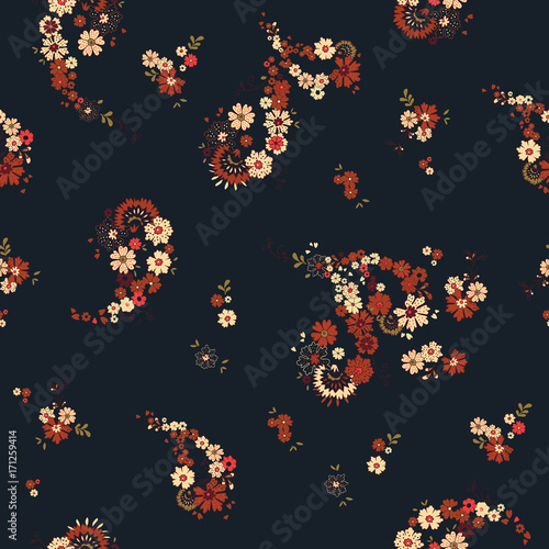 Seamless Pattern Small Flowers Isolated On Navy Blue Botanical