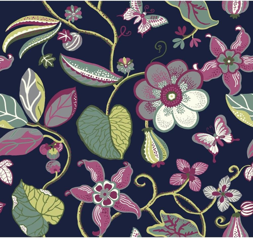 2744 24107 Fiji Navy Floral Wallpaper Boulevard