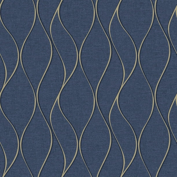 Roommates Navy Wave Ogee Peel And Stick Wallpaper Walmart Com