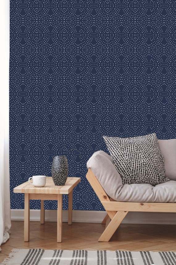 Navy Bohemian Abstract Wallpaper Removable Traditional Etsy