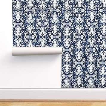 Spoonflower Peel And Stick Removable Wallpaper Kraken Navy White