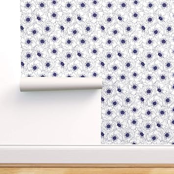 Spoonflower Peel And Stick Removable Wallpaper Mod Floral Navy