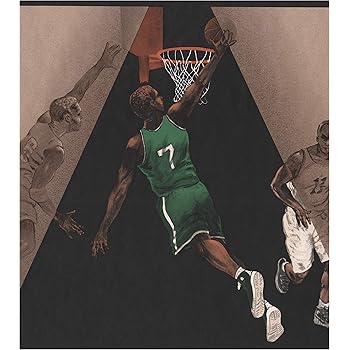 Basketball Players Black Brown Sports Wallpaper Border Retro