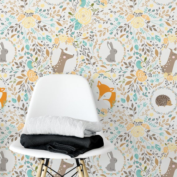 Vintage Woodland Wallpaper Gender Neutral Colorful Wallpaper Etsy