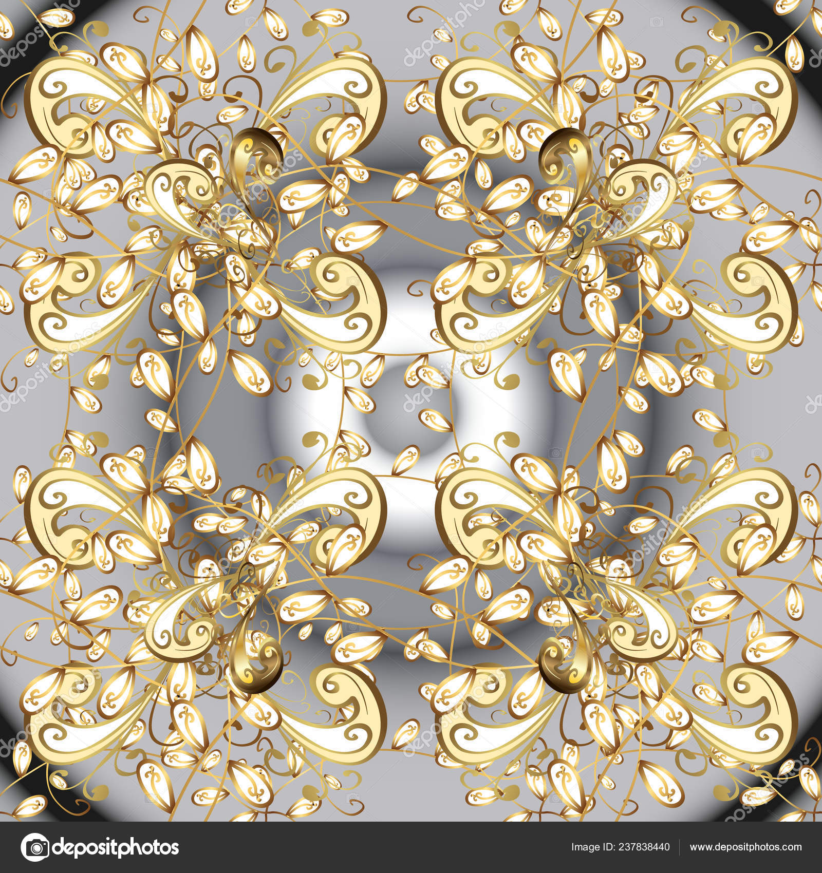 Golden Pattern Gray Neutral Colors Golden Elements Seamless Damask