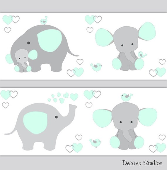 Elephant Nursery Decor Mint Green Boy Girl Wallpaper Border Etsy