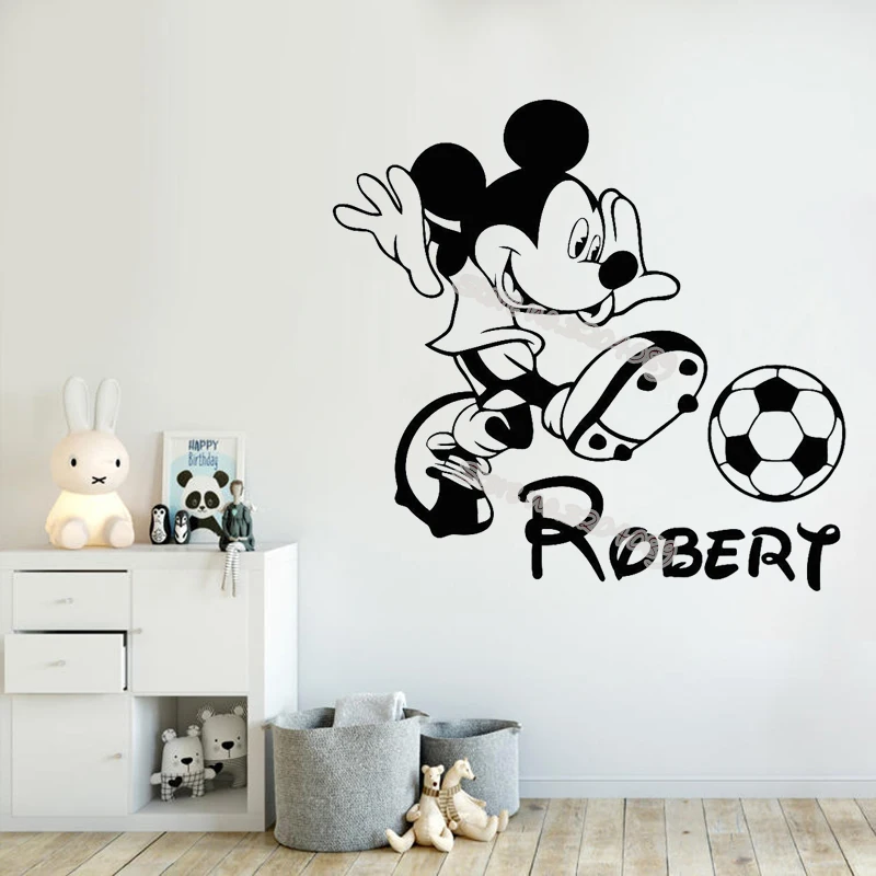 Personalised Custom Name Soccer Wall Sticker Cartoon Mickey Mouse