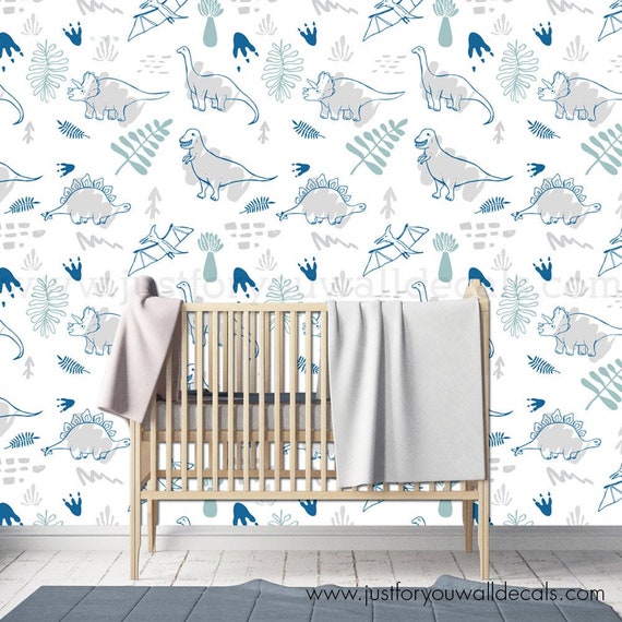 Baby Boy Nursery Wallpaper Dinosaur Wallpaper Wall Decor Etsy