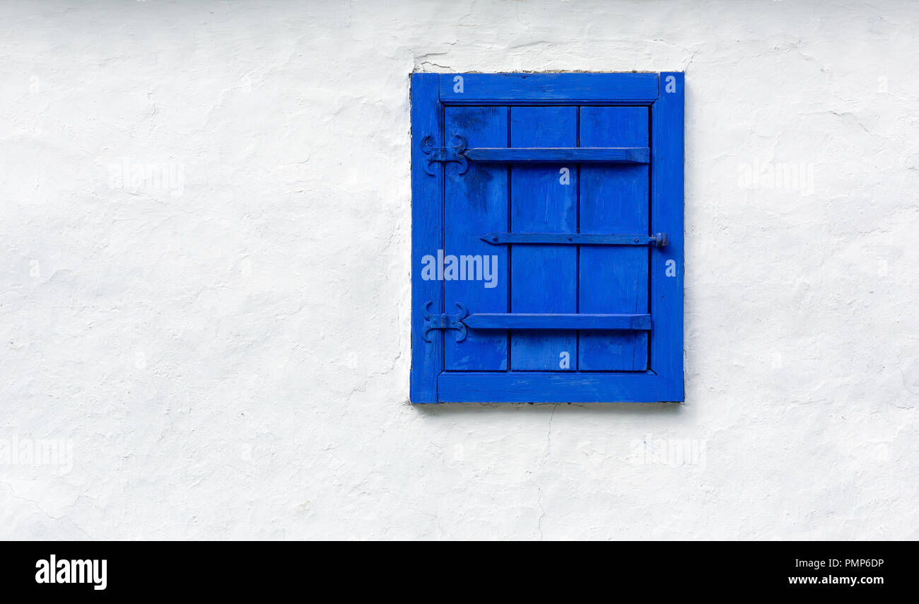 Blue Old Window On A White Wall Background Vintage Abstraction