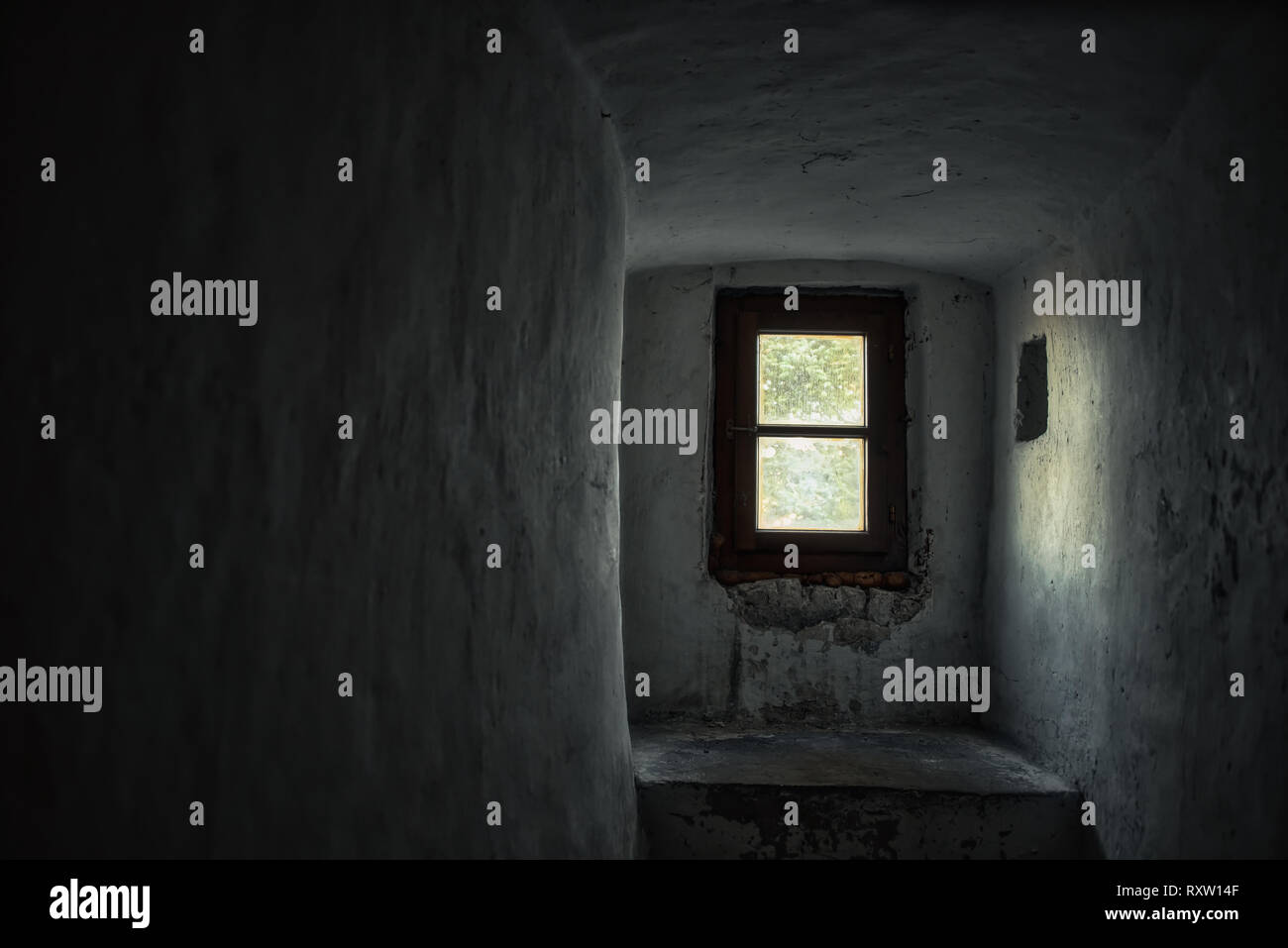 The Sunlight Entering Through The Small Window Of An Old Castle