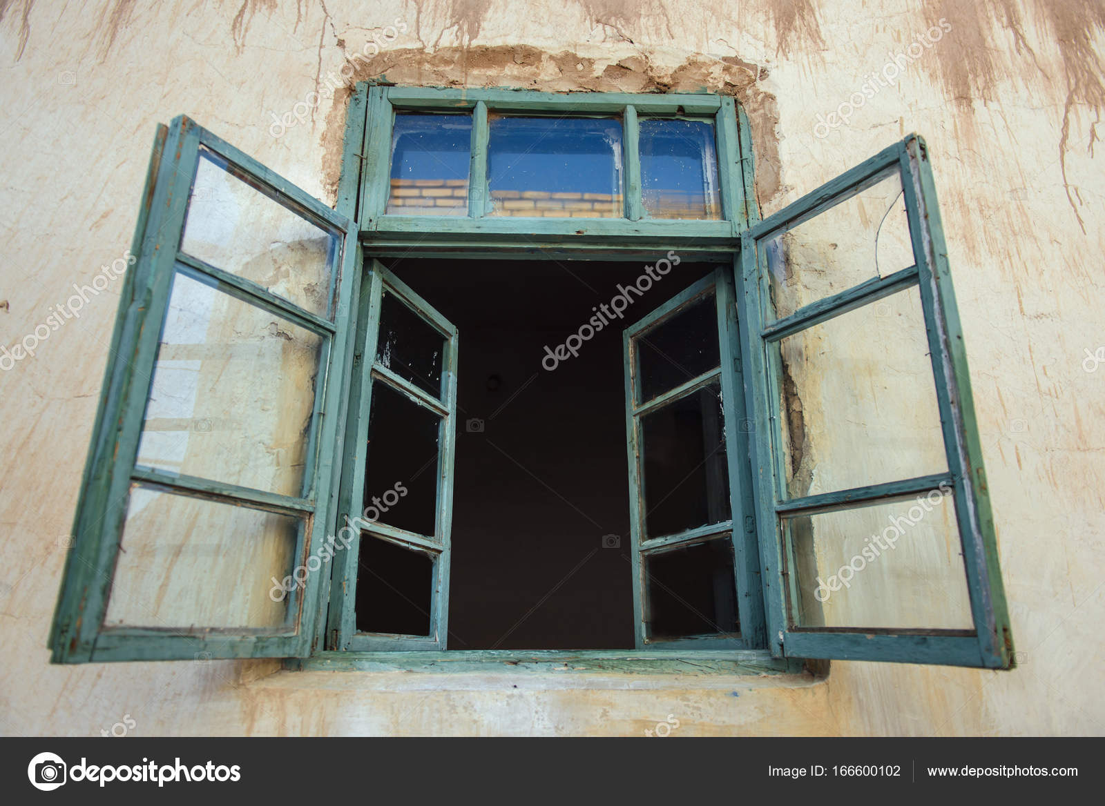 Cracks On A Blue Wall And Old Window Stock Photo Image Of