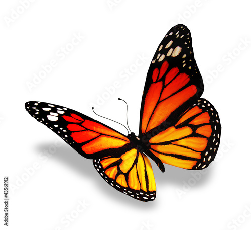 Yellow Orange Butterfly Isolated On White Background Wall Mural