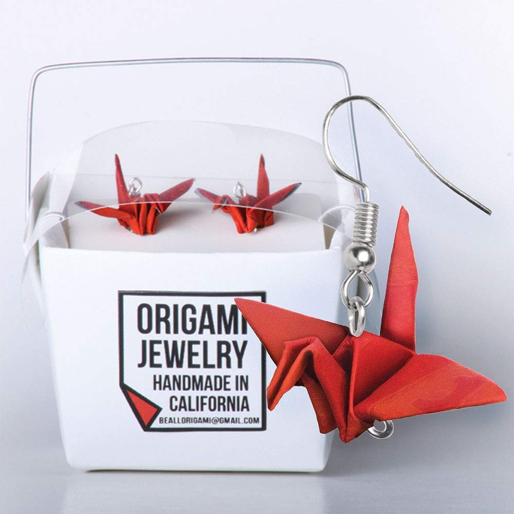 Amazon Com Red Origami Crane Earrings Handmade With Recycled