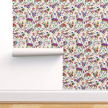 Spoonflower Pre Pasted Removable Wallpaper Animal Pinata Otomi
