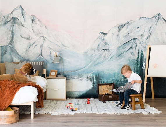 Rainier Mural Pacific Northwest Mountain Wallpaper Etsy