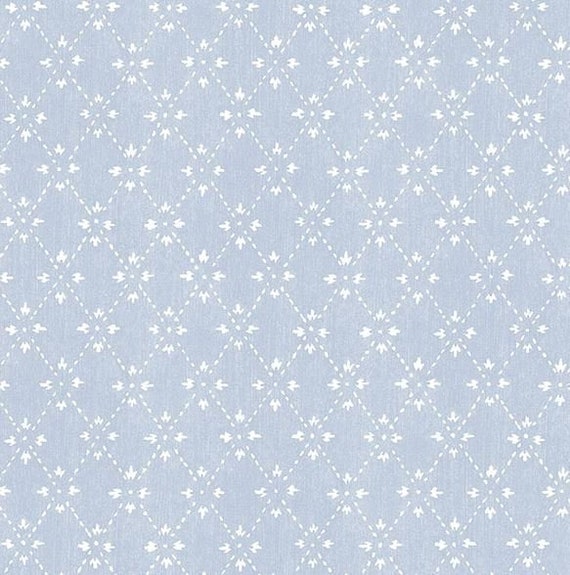 White Petite Stencil On Pale Blue Wallpaper Shabby Chic Etsy