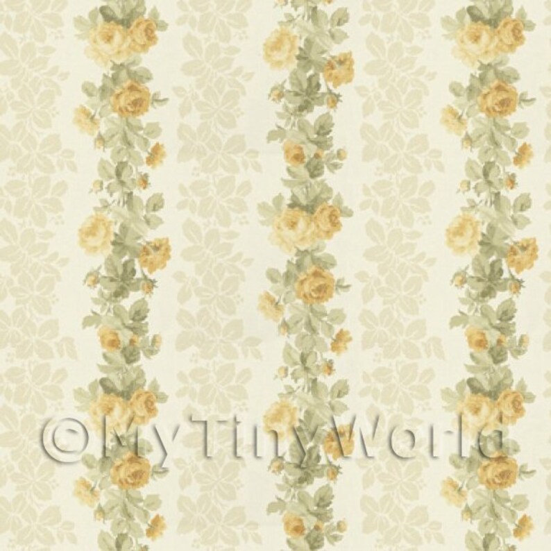 Dolls House Miniature Large Leafy Pale Yellow On White Damask