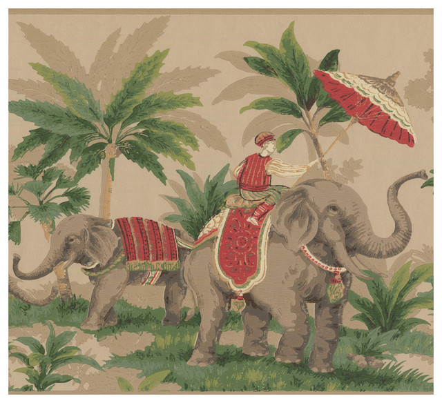 Wallpaper Border Gray Elephants Palm Trees Wall Border Retro