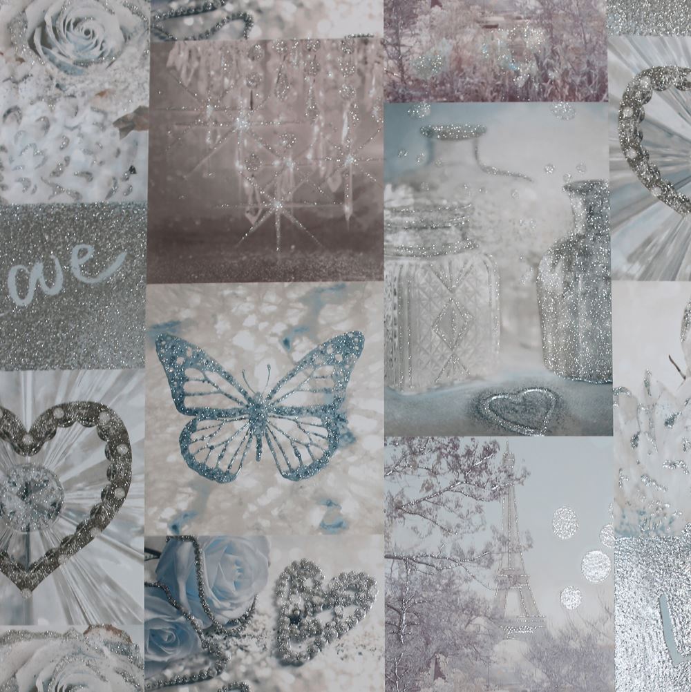 Paris Postcard Eiffel Tower Wallpaper Metallic Pink Silver Grey