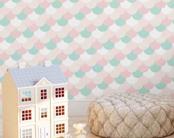 Removable Water Activated Wallpaper Pastel Scales Watercolor