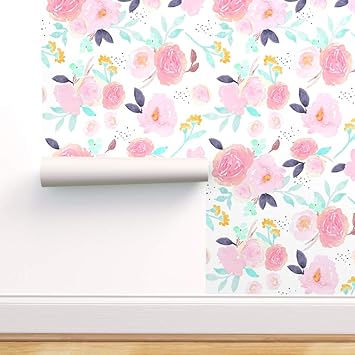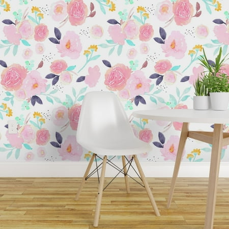 Wallpaper Roll Spring Flowers Pastel Watercolor Floral Indy Bloom
