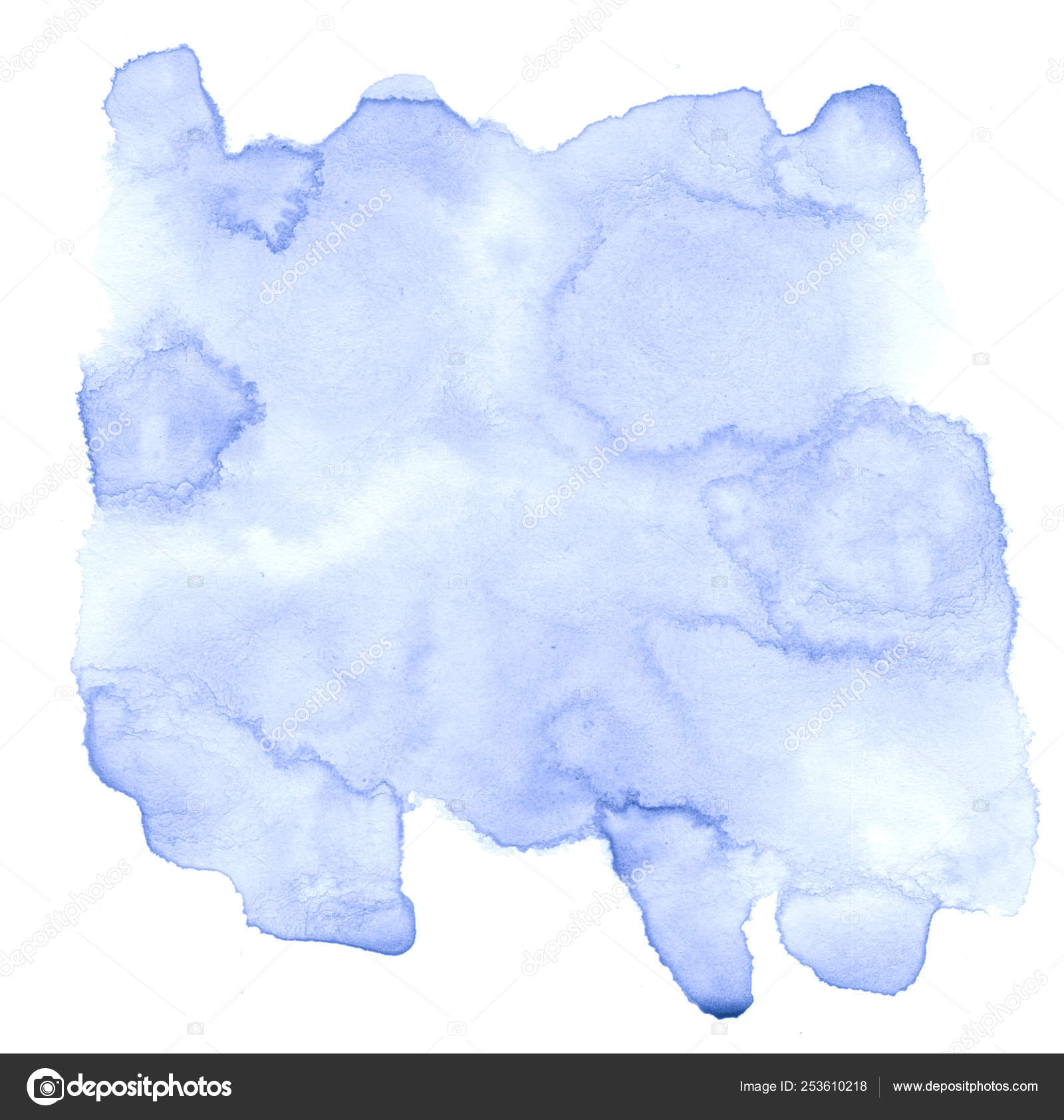 Blue Pastel Watercolor Hand Drawn Isolated Wash Stain On White