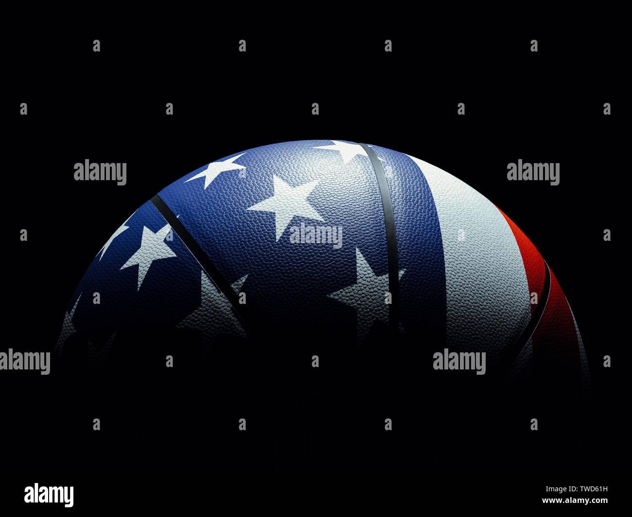 Brightly Lit Isolated Basketball Over Black Background Colored