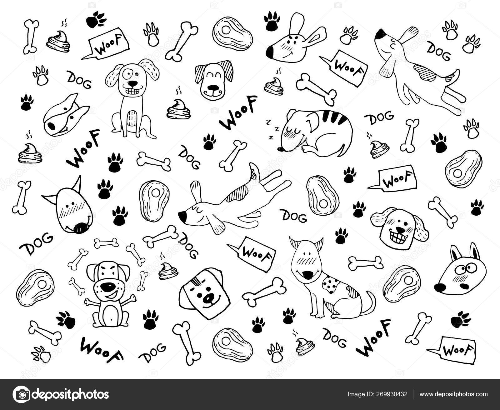Hand Doodle Vector Clipart With Funny Dogs Paw Prints And Bones