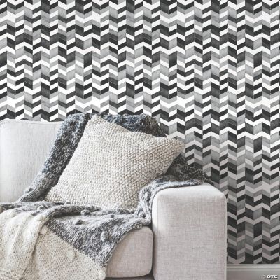 Roommates 28 18 Sq Ft Grey Chevron Stripe Peel And Stick