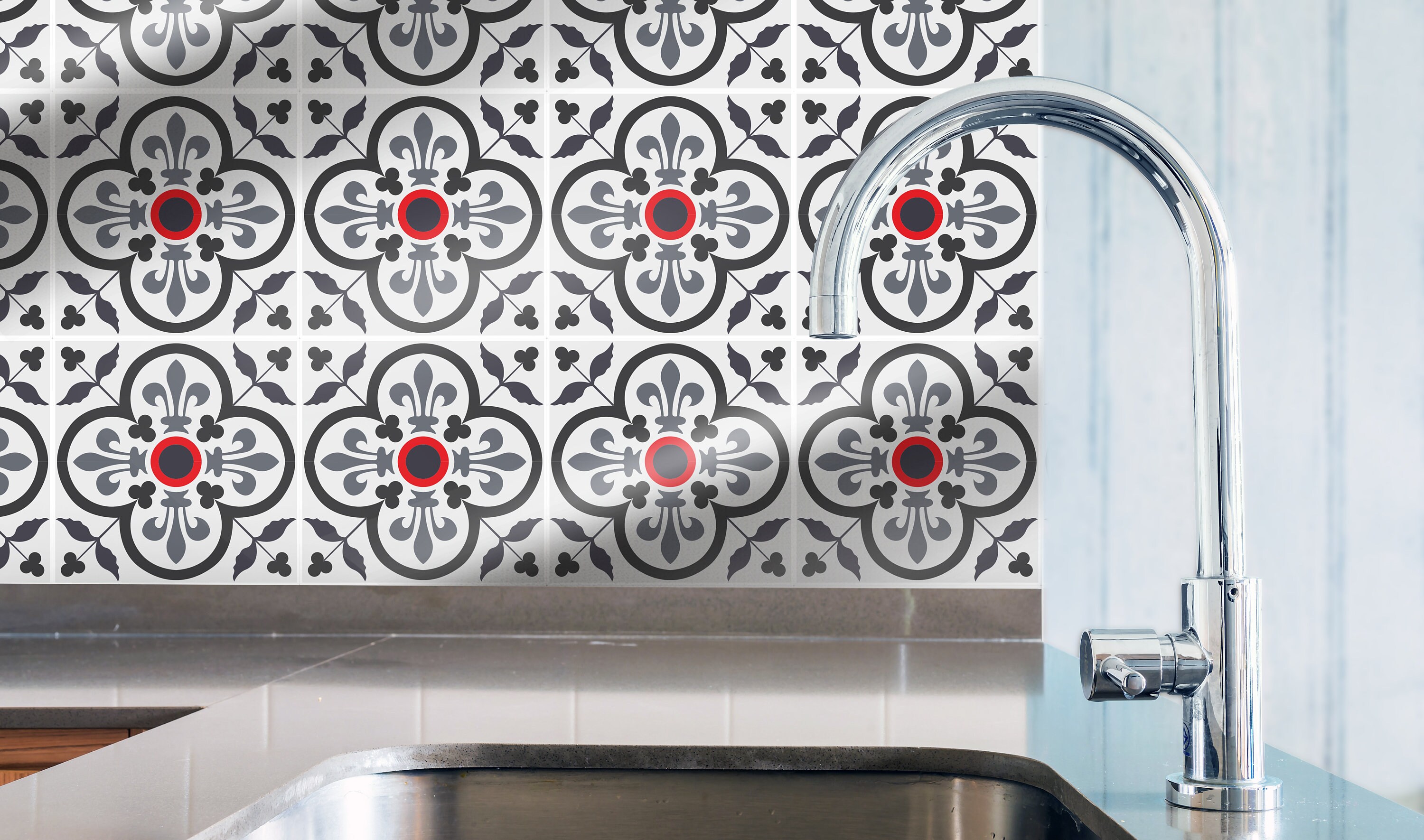 Red Moroccan Wallpaper Decor Kitchen And Bathroom Splashback Etsy