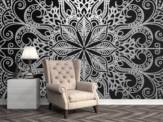 Metallic Silver Wallpaper Bohemian Peel And Stick Luxury Wall Etsy