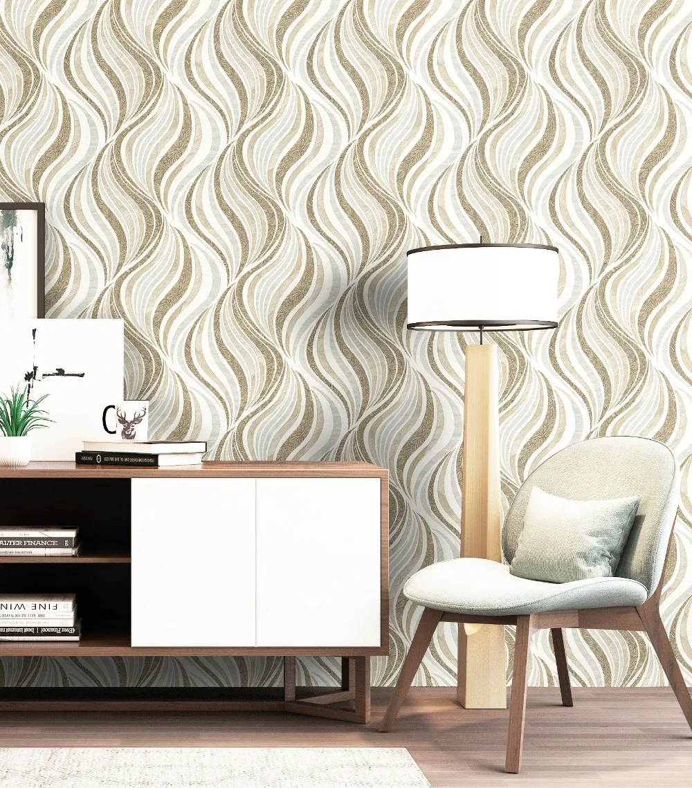 Haokhome Modern Stripe Wave Peel And Stick Wallpaper Roll For Wall