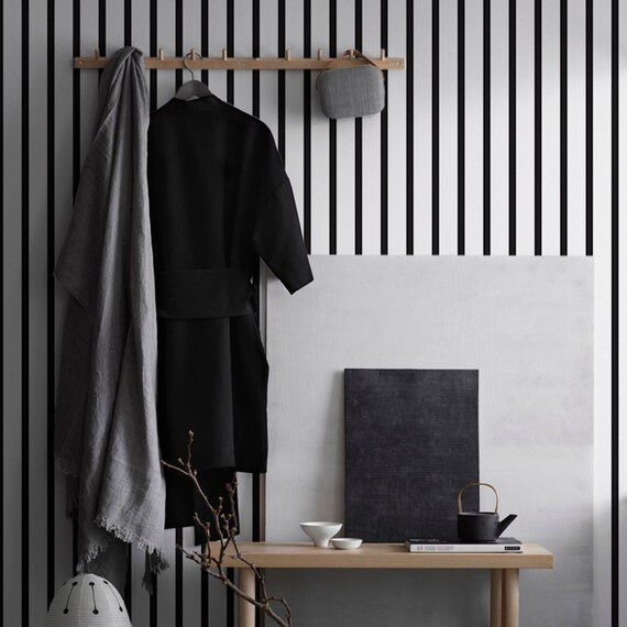 Black And White 12 Stripe Wallpaper Peel N Stick Etsy