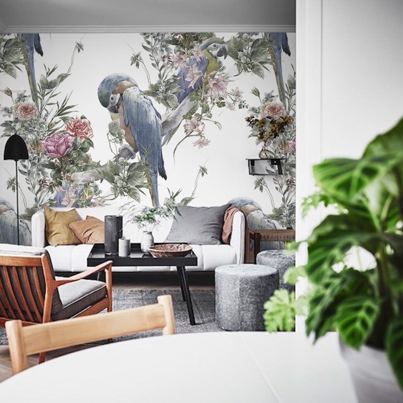 Tropical Floral Peel Stick Wallpaper Birds Wall Mural Parrot