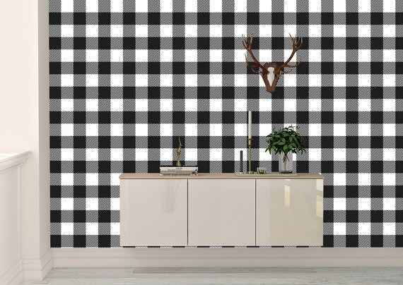 Removable Peel And Stick Wallpaper Black And White Plaid Etsy