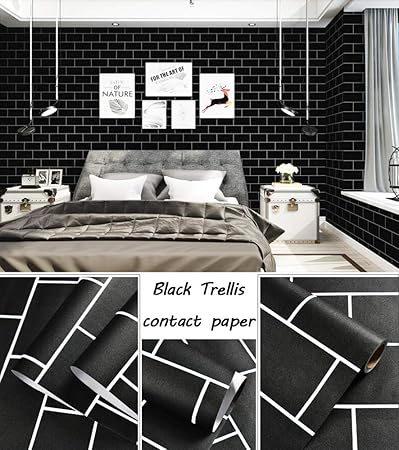Amazon Com Black Brick Wallpaper Black Trellis Contact Paper