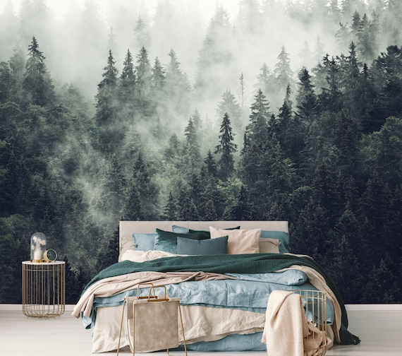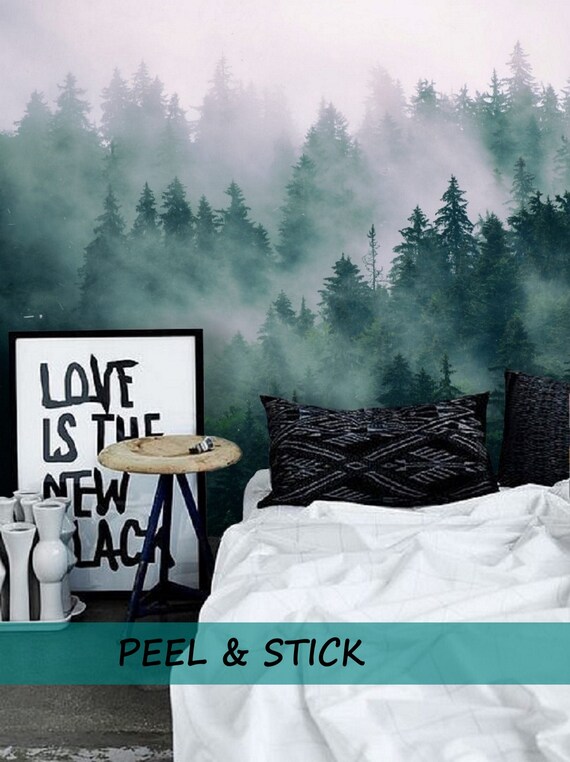Foggy Forest Self Adhesive Wallpaper Vintage Wallpaper Etsy